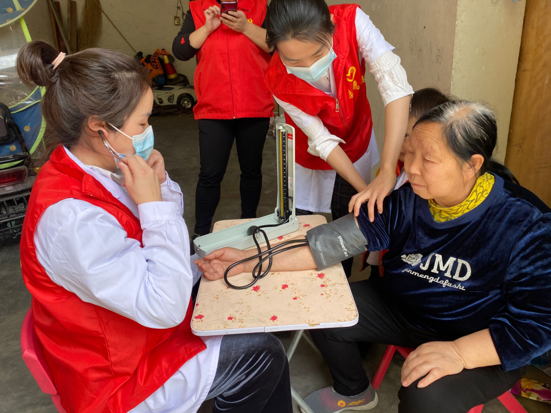 为弘扬雷锋精神,增强居民的健康意识,2021年3月27日下午14:00,乐山市嘉州卫校青年志愿者服务队联合苏稽街社区党委志愿者服务队在苏稽街道开展了“医心向党迎百年 志愿同行送健康”的医疗服务活动,用专业技术服务于民,用实践行动迎接建党100周年。