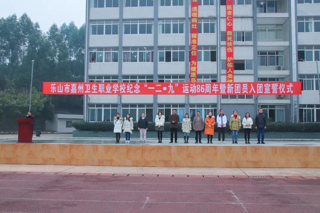 为纪念“一二•九”学生爱国运动,弘扬爱国主义精神,增强共青团员的荣誉感和使命感,2021年12月9日上午9点,乐山市嘉州卫生职业学校隆重举行了纪念“一二•九”运动86周年暨新团员入团宣誓仪式。