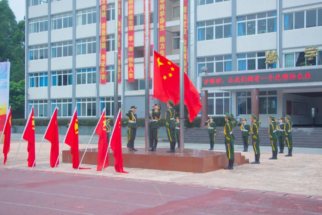 活动在庄严的升旗仪式中拉开帷幕,伴随着雄壮的国歌声,五星红旗冉冉升起,迎着初升的旭日,绽放出耀眼的红光。