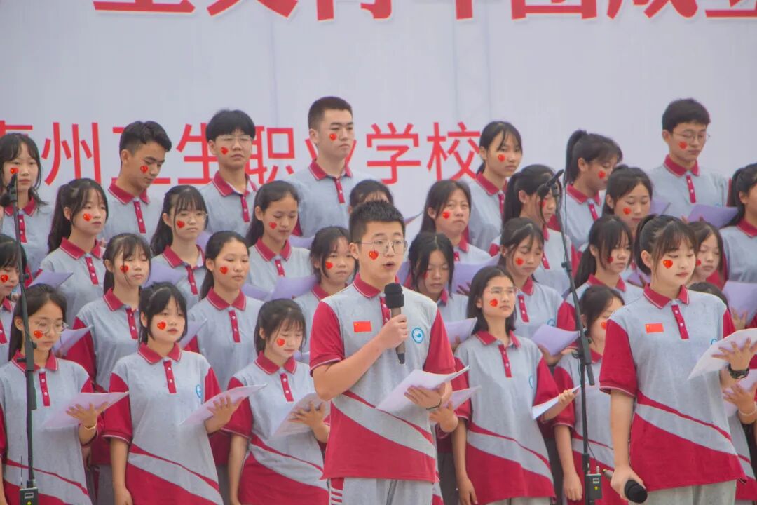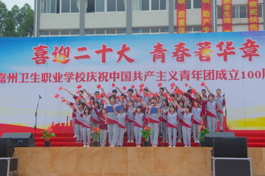 挥舞的国旗、充满爱意的手势、闪烁着光芒的眼神,彰显出卫校学子对党、对国家、对人民的依恋之情。