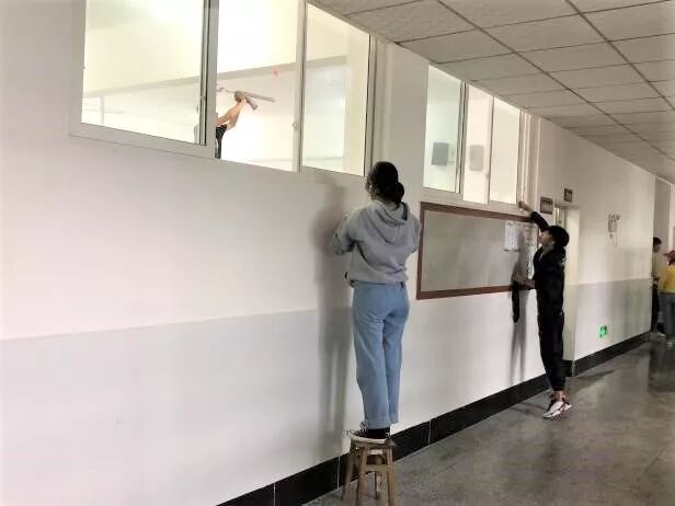 在班主任老师的带领下,各班对教室、公区、寝室等进行了全面的清扫,各班对自己所在的区域内的墙壁字画、灭火器、消火栓、护栏、窗台、花园、草坪等进行了清扫,做到窗明几净,不留一丝蜘蛛网,不留一个口香糖印记,不留一丝灰尘及杂物,教室内桌椅摆放整齐,书本按照标准统一摆放。
