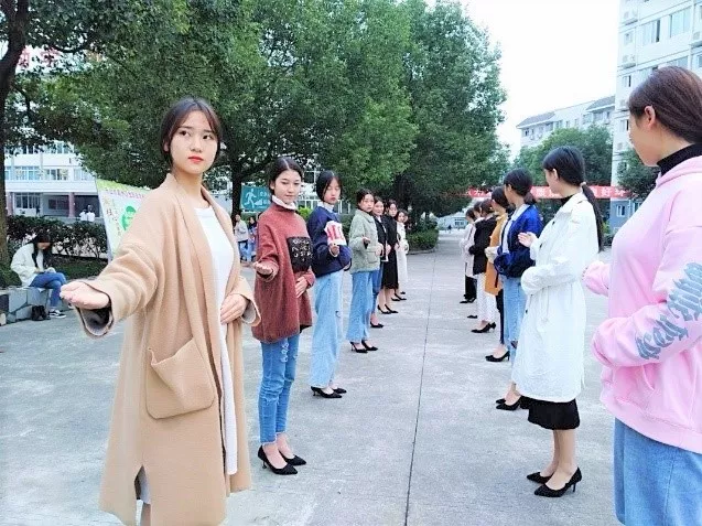 本学期社团活动主要以实操为主,开设有站姿、走姿、蹲姿、握手礼仪、鞠躬礼仪、退步转弯、名片递送、手势指引、以及坐姿、微笑训练、文明礼貌用语培训等内容。台上一分钟,台下十年功,表面彬彬有礼、大方得体的她们,背后是日复一日的训练与不怕苦累的坚持。