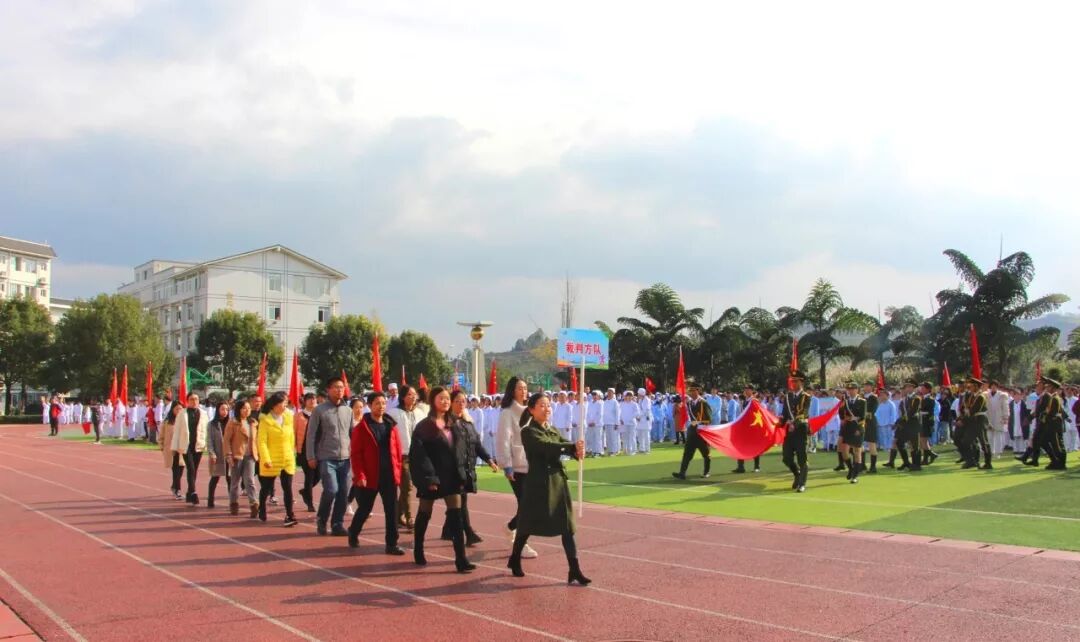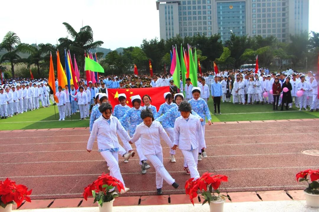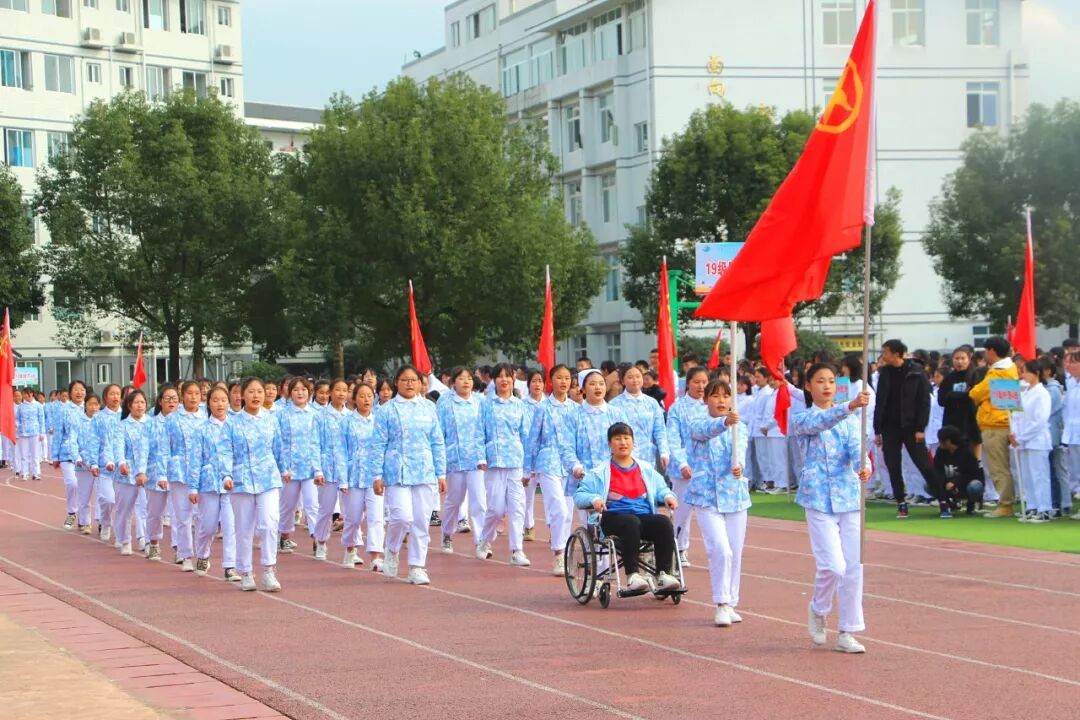 伴随着运动员进行曲,同学们身穿整齐统一的服装,踏着自信昂扬的步伐,缓缓向主席台走来。
