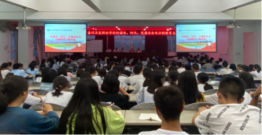 为确保我校学生顺利度过“平安暑假”,谨防假期中溺水事件、交通安全事故、违法犯罪事件等的发生,2020年7月10日,乐山市嘉州卫生职业学校学生处举办了“防溺水、防汛、交通安全及法制教育”主题讲座。
