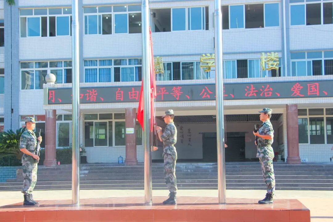 国歌响起,肃然起敬;共唱国歌,心系祖国。护旗手握着鲜艳的五星红旗,迈着矫健的步伐走向旗台,全体师生行注目礼,同学们跟着缓缓升起的五星红旗唱响国歌,声音响彻整个校园。