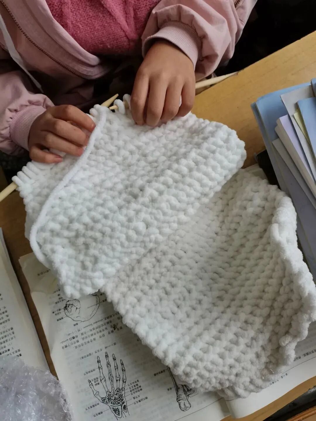 手工社是心灵手巧的舞台,是创意的殿堂,更是精致唯美的博物馆,手工不仅能充分发挥同学们爱动手、动脑的天赋,培养同学们的创新思维,还能让他们在不同的领域,体验参与的快乐与成功的喜悦!欢迎能有更多热爱动手、热爱生活,有着奇思妙想的同学加入手工社,一起编织生活的美好! 手工是一种创造的过程,它通过将想法和日常手工材料相结合,让那些平凡的材料变成极具装饰性的艺术品。在指导教师康晓梅老师认真、细心的指导下,同学们对手工产生了浓厚的兴趣,织围巾、绣手绢……忙的不亦乐乎。由于是初次接触手工,同学们的手法有些生涩,制作出来的成品或许没有想象中的精美,但相信通过她们不断的练习和完善,一定能制作出更加完美的手工作品。