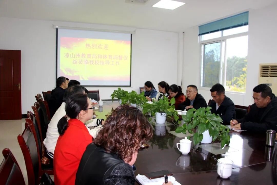 督查调研组实地考察学校后听取了我校教学工作、师资队伍建设、凉山州学生在我校学习和享受资助等工作的情况汇报。
