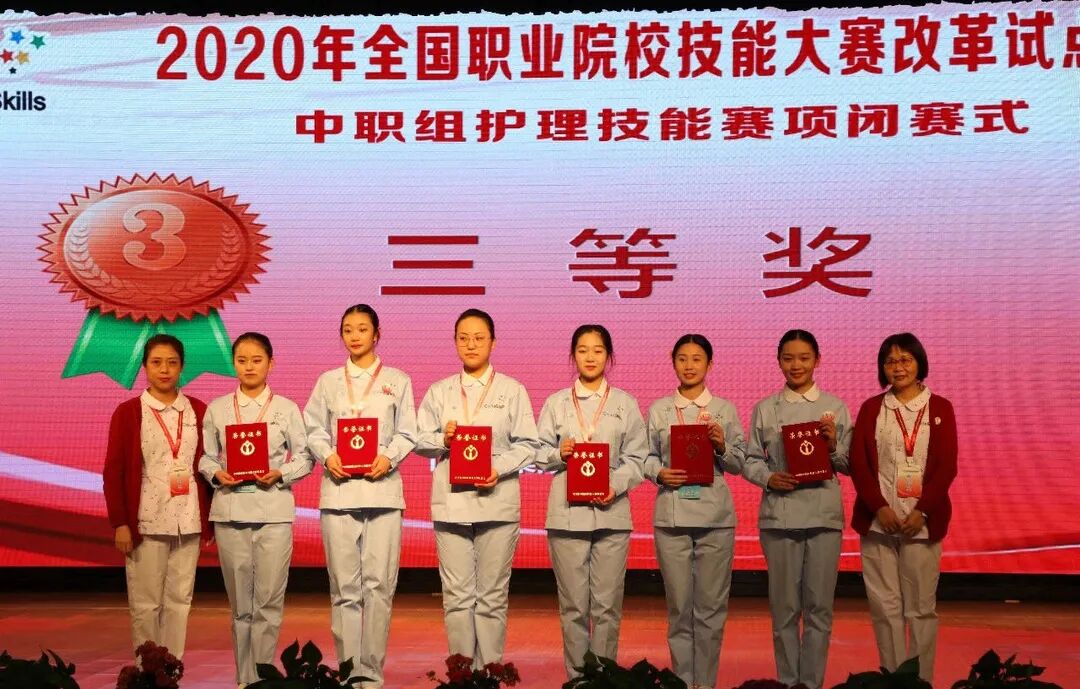 11月22日,2020年全国职业院校技能大赛改革试点赛中职组护理技能赛项在山东省莱阳卫生学校圆满收官。此次比赛,来自全国各省、市、自治区、计划单列市和新疆生产建设兵团的36支代表队的36名选手同台竞技,最终共决出一等奖4个、二等奖7个、三等奖11个。
