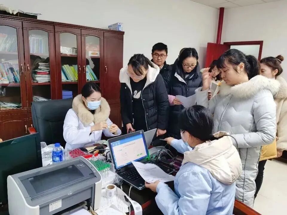 早上七点,医务工作人员便早早来到学校,经过一系列的准备后,七点半,检查正式开始。资料录入、测血压、量身高、体重、采血……每一个项目都有条不紊地进行着。